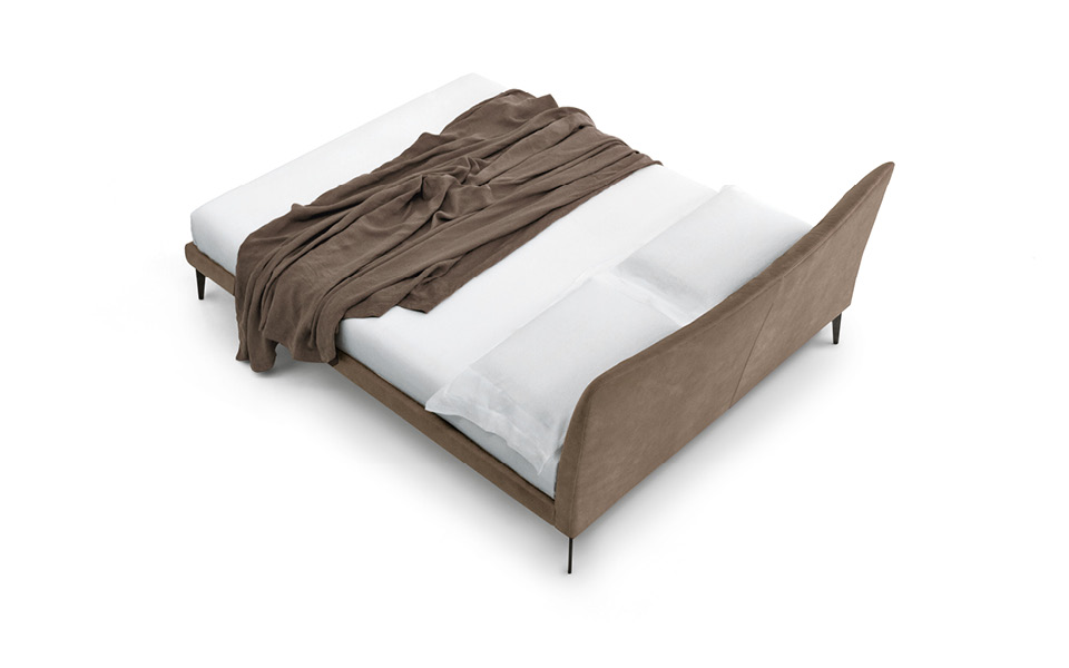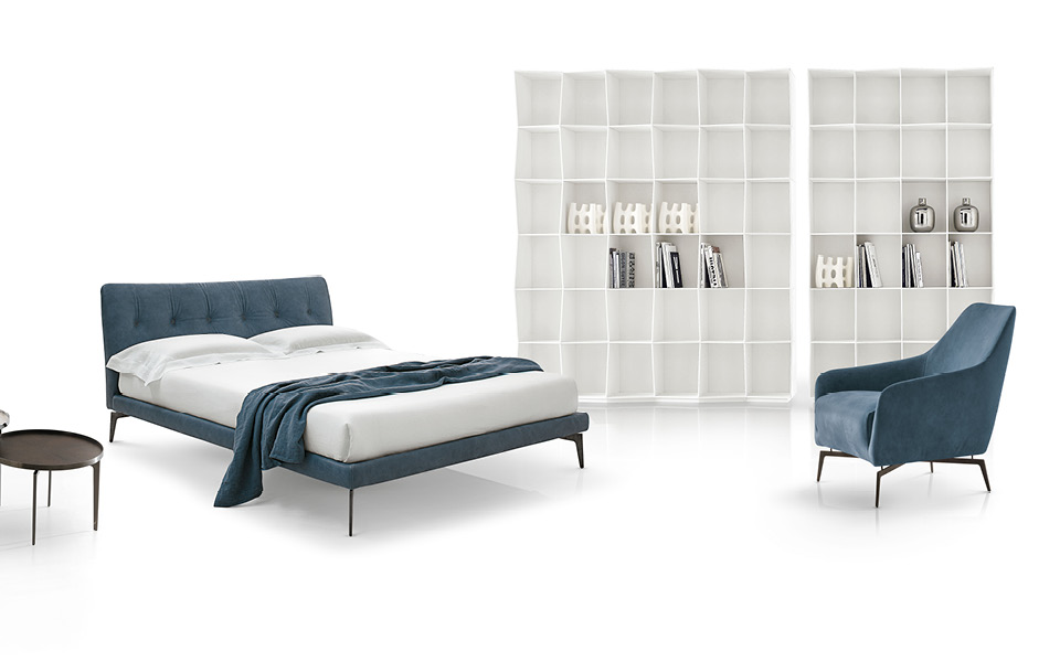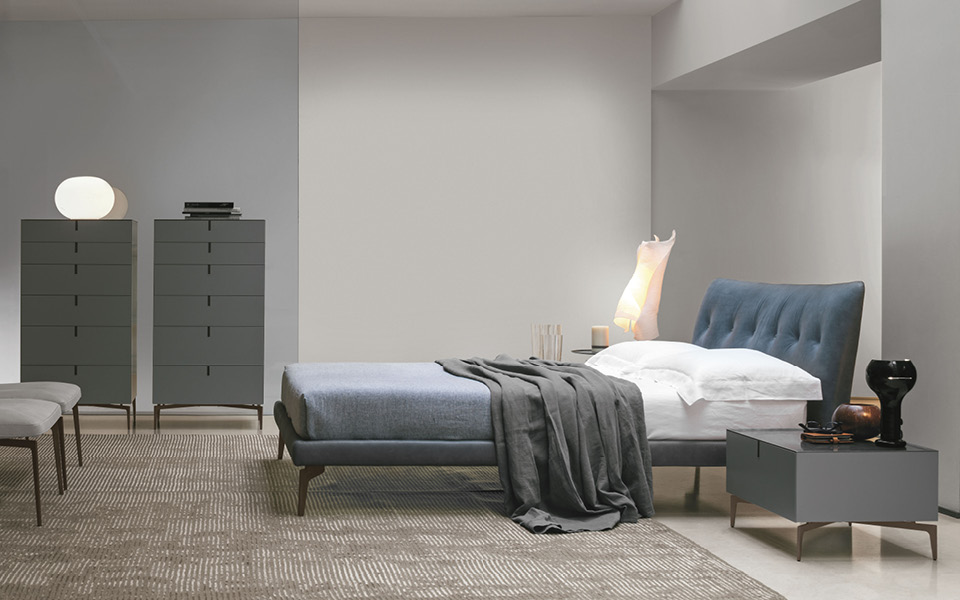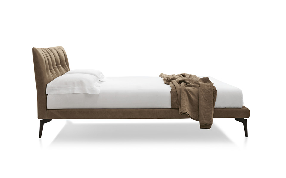 Forma sensuale che suscita piacere tattile. Un letto dall’eleganza un po’ retrò, con linee morbide ed impreziosito dalla lavorazione dell’impuntura della testata. Un vero protagonista dello spazio notte.