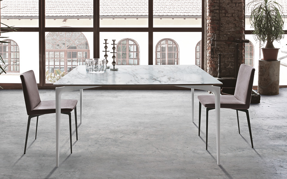 La pulizia delle linee e un’attenta esplorazione di materiali innovativi e materie prime naturali, come il marmo, creano accostamenti che generano un risultato sorprendente. Il tavolo è il punto focale della stanza dedicata alla convivialità e agli incontri.