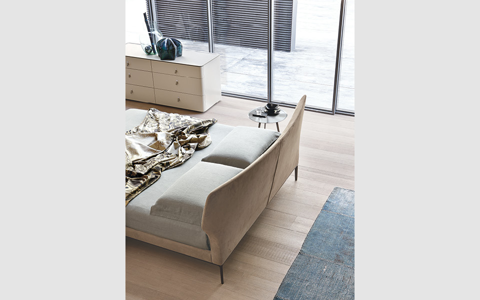 Maya ha un elevato contenuto artistico e un particolare carattere creativo. Il riposo diventa simbolo di uno stile ancorato alla storia del design. Un letto dalle linee avvolgenti, con testata rivestita in pelle o tessuto e impreziosita dall’accurata cucitura centrale. Il letto è proposto in diverse misure ed è disponibile anche nella versione con base con contenitore, utile per riporre cuscini, coperte e biancheria.