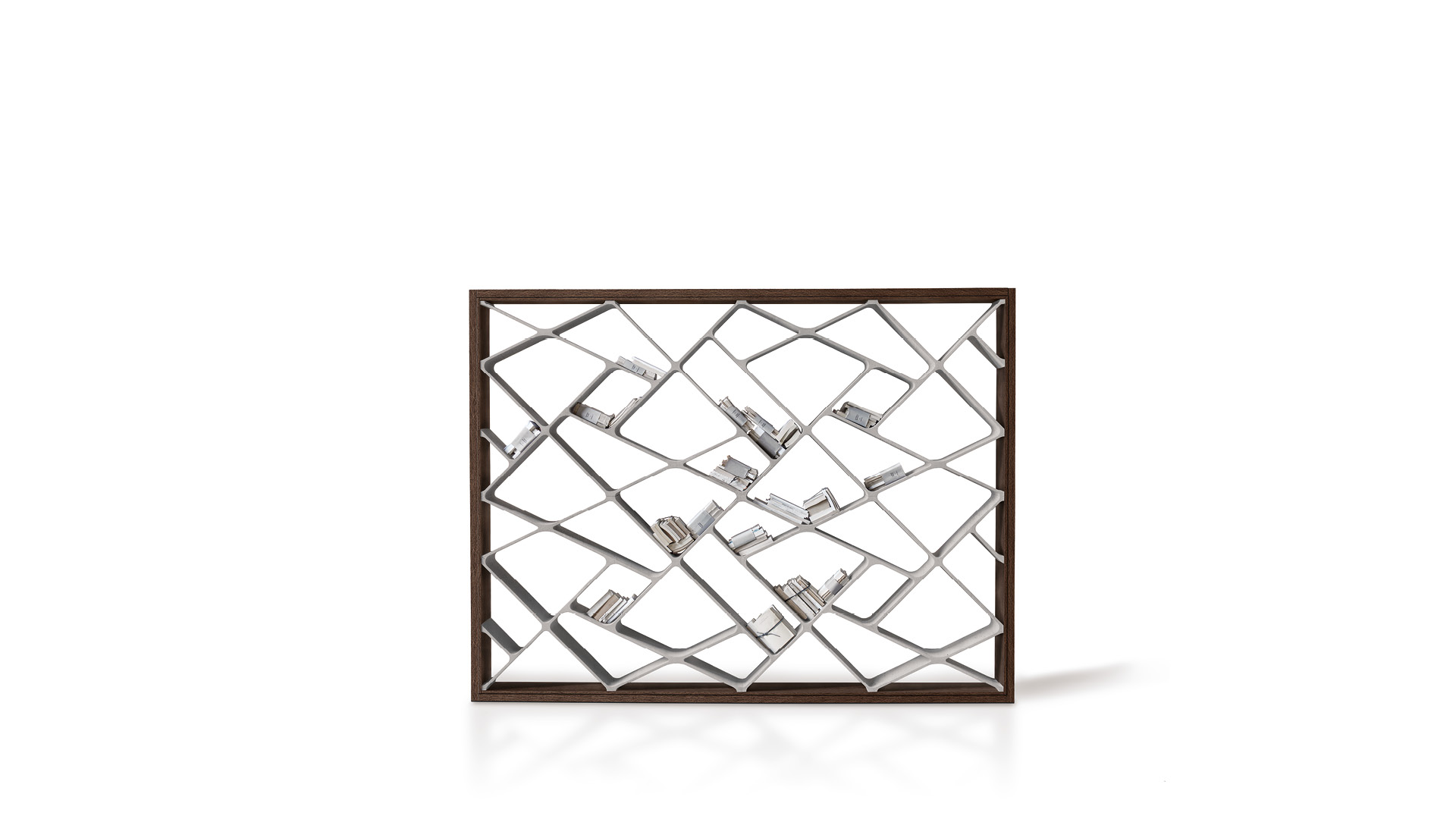 Eccentrica ed esclusiva, Shanghai è una libreria di grande impatto visivo caratterizzata da uno stile distintivo capace di trasferire agli ambienti uno stile di grande classe e ricercatezza. La particolare struttura interna ad “alveare” rende senza dubbio Shanghai un pezzo originale e sofisticato per arredare la zona giorno con creatività e gusto. Peculiarità che la rende immediatamente riconoscibile è proprio la rete formata dall’intersezione dei ripiani, che disegnano una composizione geometrica di linee e spazi. Una proposta che appaga la vista e che si discosta dalla tradizionale concezione di libreria.